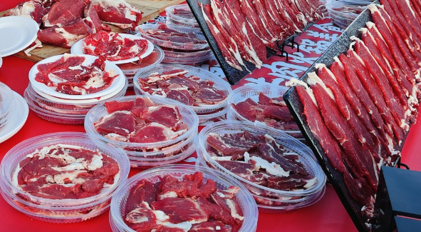 活動(dòng)現(xiàn)場,廚師精湛的刀工秀盡顯食材本色,涇源黃牛各部位肉品特色鮮明,搭配現(xiàn)場特調(diào)的土蜂蜜熱飲,地道風(fēng)味直抵人心。市集每日提供10個(gè)涇源黃牛肉火鍋、200人份小火鍋及1000串黃牛肉串供市民免費(fèi)品鑒,鮮美的肉質(zhì)與濃郁的湯底獲游客交口稱贊,不少人品嘗后直奔特產(chǎn)展位選購,帶動(dòng)消費(fèi)熱度攀升。