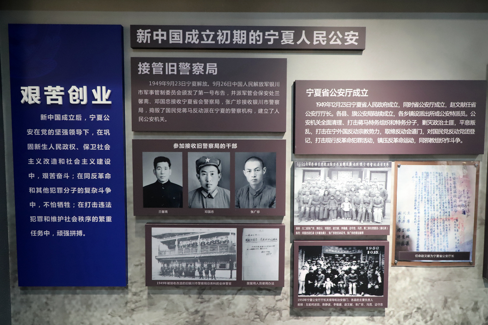 2015年,寧夏警察博物館陳列室問世,多年來征集到的文物有了較為正規(guī)的“陳列室”。2022年,寧夏公安廳黨委再次立項(xiàng)建設(shè)寧夏警察博物館,將其更名為寧夏公安歷史陳列館。2025年5月,再次更名的“寧夏警察博物館”建成投入運(yùn)營(yíng)。