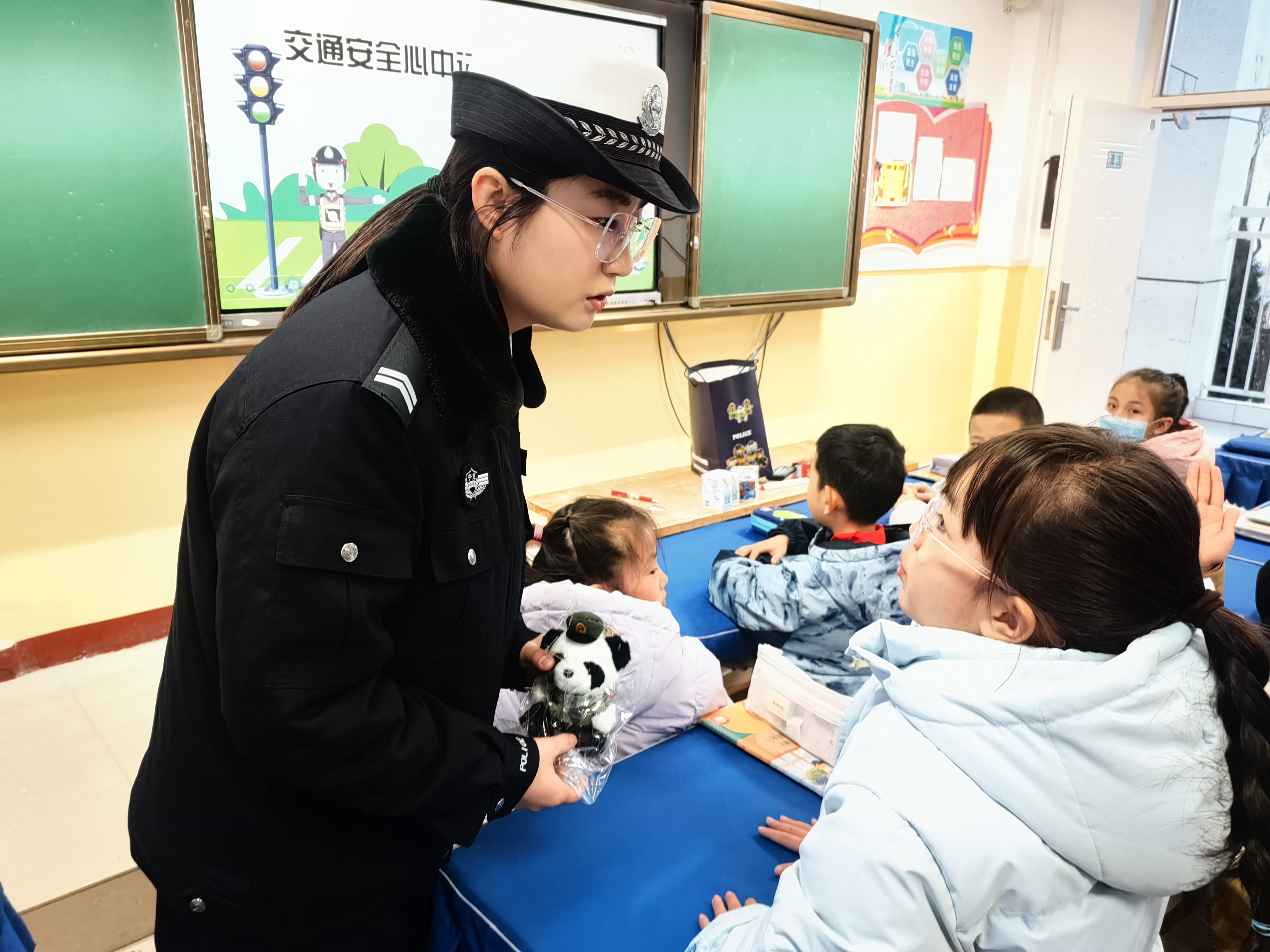宣傳員通過(guò)課堂講解、互動(dòng)問(wèn)答的形式,用通俗易懂的語(yǔ)言向?qū)W生們講解“一盔一帶”、遵守交通信號(hào)燈、安全過(guò)馬路等交通安全常識(shí),結(jié)合典型案事例剖析交通違法行為的危害。問(wèn)答環(huán)節(jié)中,學(xué)生們積極舉手搶答,現(xiàn)場(chǎng)氣氛熱烈。宣傳人員為答題正確的學(xué)生送上交警小熊、卡通掛飾等禮品,讓學(xué)生在趣味互動(dòng)中加深對(duì)交通安全知識(shí)的理解。