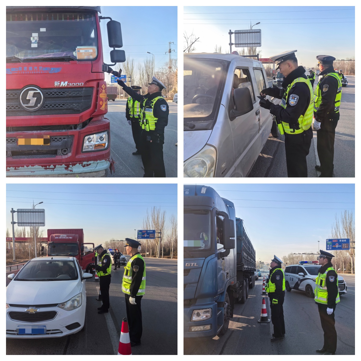 行動中,大隊結合轄區(qū)實際情況,分別在轄區(qū)110國道與賀蘭山西路路口、110國道與新小線、110國道與德林村公路路口設置執(zhí)勤點位,聯(lián)合路政部門工作人員對途經檢查點車輛進行檢查,嚴查貨車超限超載、闖禁行、非法改裝、遮擋污損號牌、闖紅燈等交通違法行為,堅決做到發(fā)現(xiàn)一起、查處一起,切實保持路面嚴查嚴管的高壓態(tài)勢,規(guī)范行車秩序。有效預防和減少涉“貨”道路交通事故,全力確保轄區(qū)道路交通安全暢通。(西夏區(qū)交警二大隊)